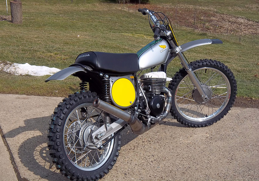I found this bike about 3 miles from my home 2 years ago and it was complete but in very rough condition. As I rode it home with a toasted clutch I had to keep pulling up the kick starter. I cruized by a few places that I rode at 38 years ago and stopped at a friends house who had a new '73 CR250M Elsinore back in the day and let him ride it. What memories!