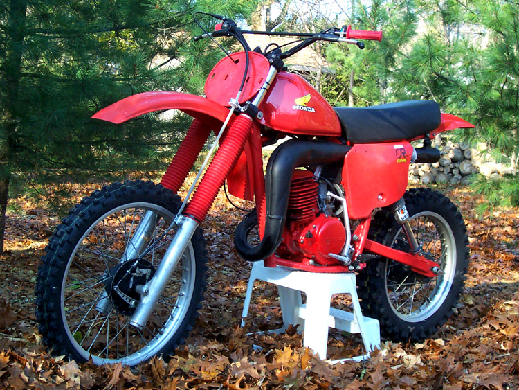 I restored this 1979 CR250 to look like Marty Smith's RC from the glory days. When purchased two years ago, the bike had a seized clutch and swingarm bolt and several other typical issues. Everything was redone and some upgrades were added to complete the RC effect such as bigger forks, Fox ring for the airbox, Fox Airshox, Oury grips and for comfort/safety, modern footpegs (2002 CR).