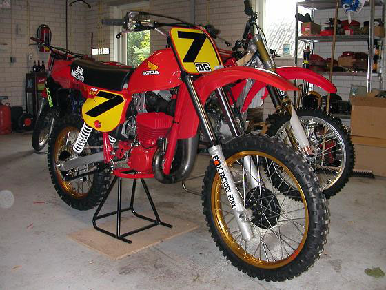I ordered a set of Fox repro aluminium by Red Racer in The USA to make the bike extra trick. A new airbox came from Alan Woods in the UK. The pipe came from Spain and the Fox Forx from the USA (Dave Turk). While I was busy with the bike I came across a Lectron carburetor, they are very Hard to find here in Holland and nobody has ever heard of them, WP shocks (twinclickers) came from Erik Goossens, a friend of mine who is working for WP Benelux. He built them especially for me. I'll try this bike tomorrow at the track here in the neighborhood, and I think it will go like hell!!